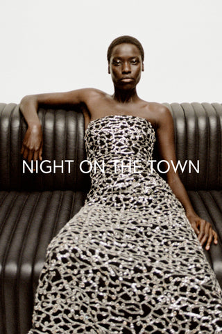 Step into Night on the Town – a collection designed for this season’s celebratory moments. Sculpted silhouettes and statement details redefine holiday dressing with modern edge.