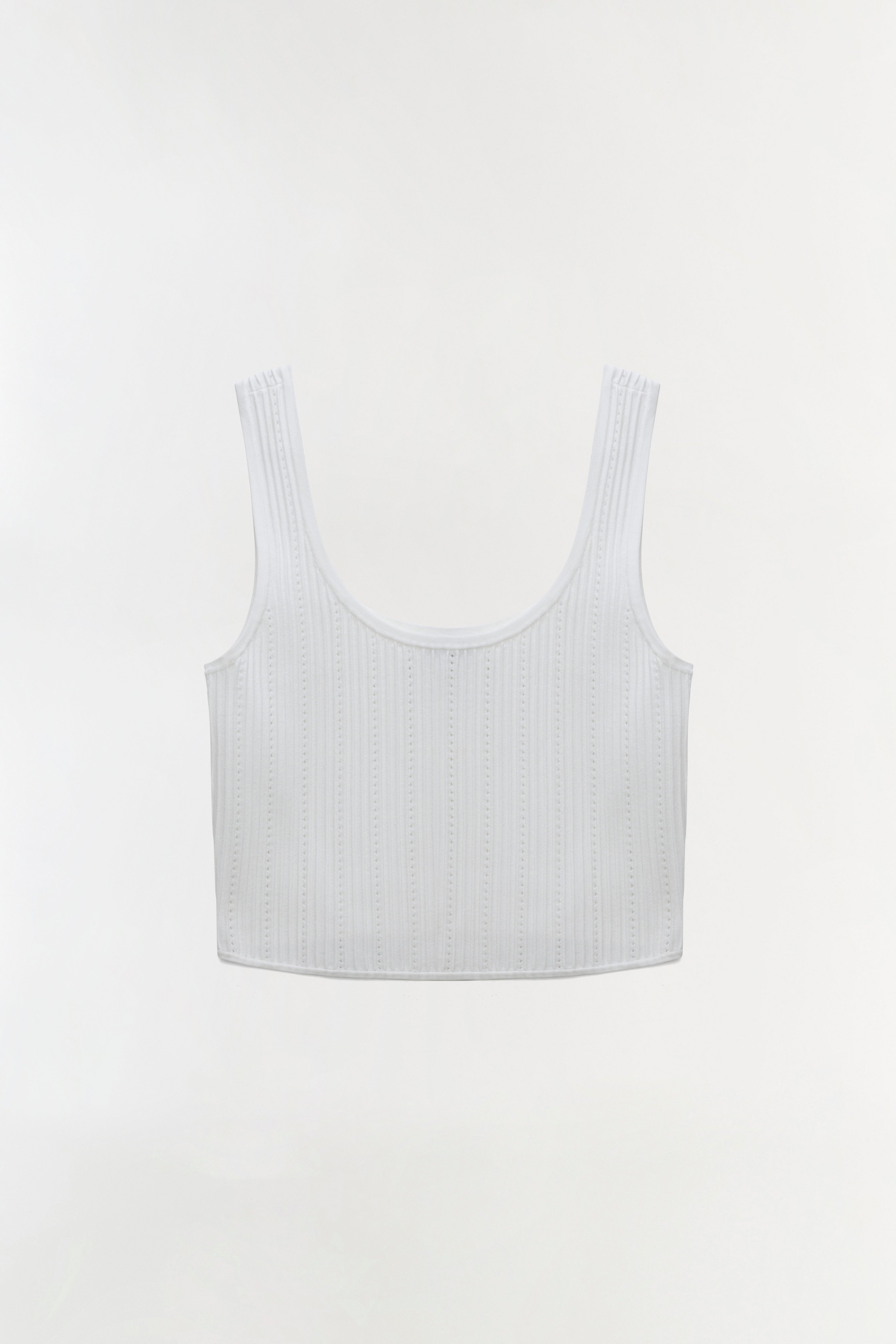 The Rylan Knit Tank in Ivory. This knit scoop tank top features a cropped silhouette and visible seams for subtle structure.