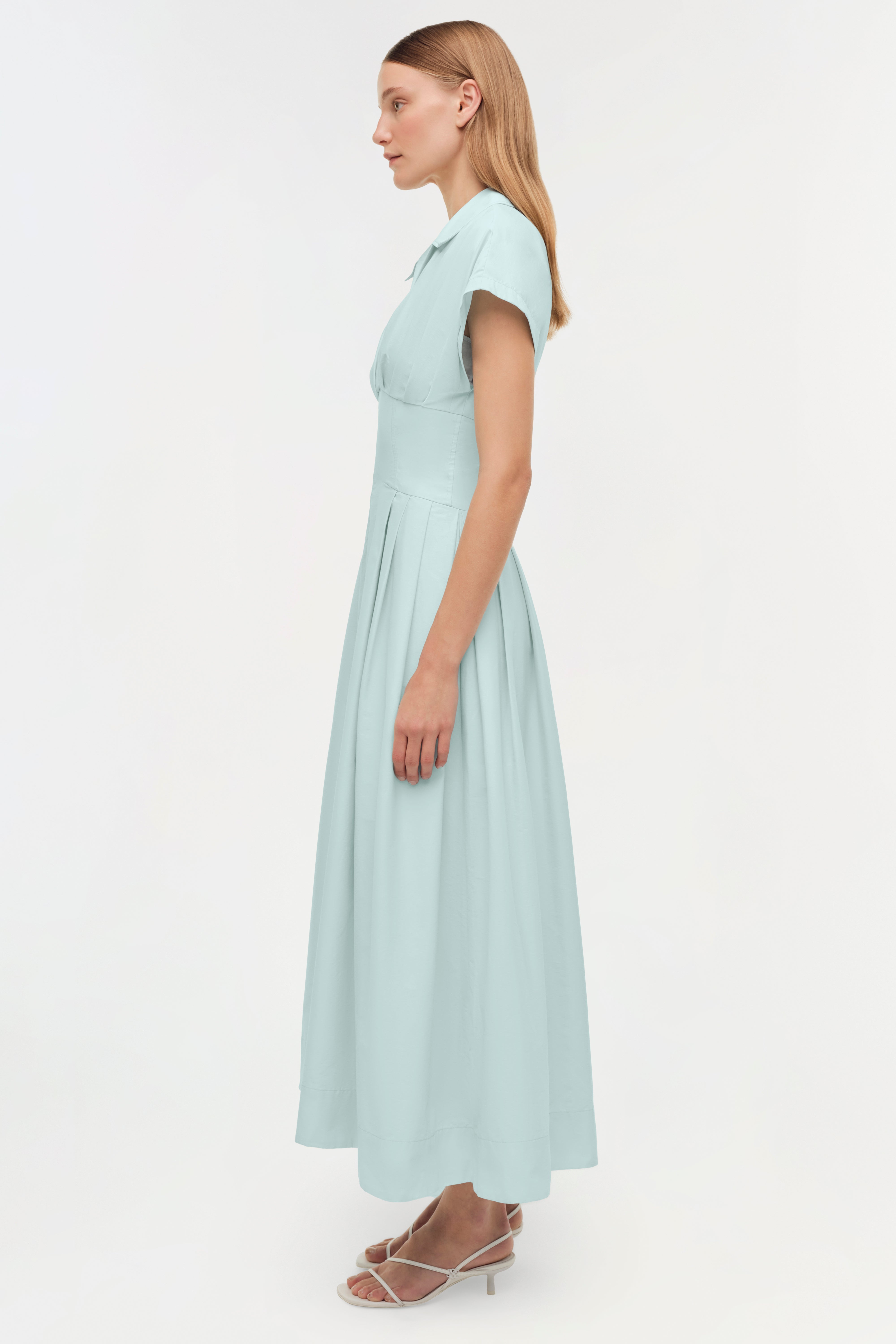 The Farlow Cotton Faille Midi Dress in Sky