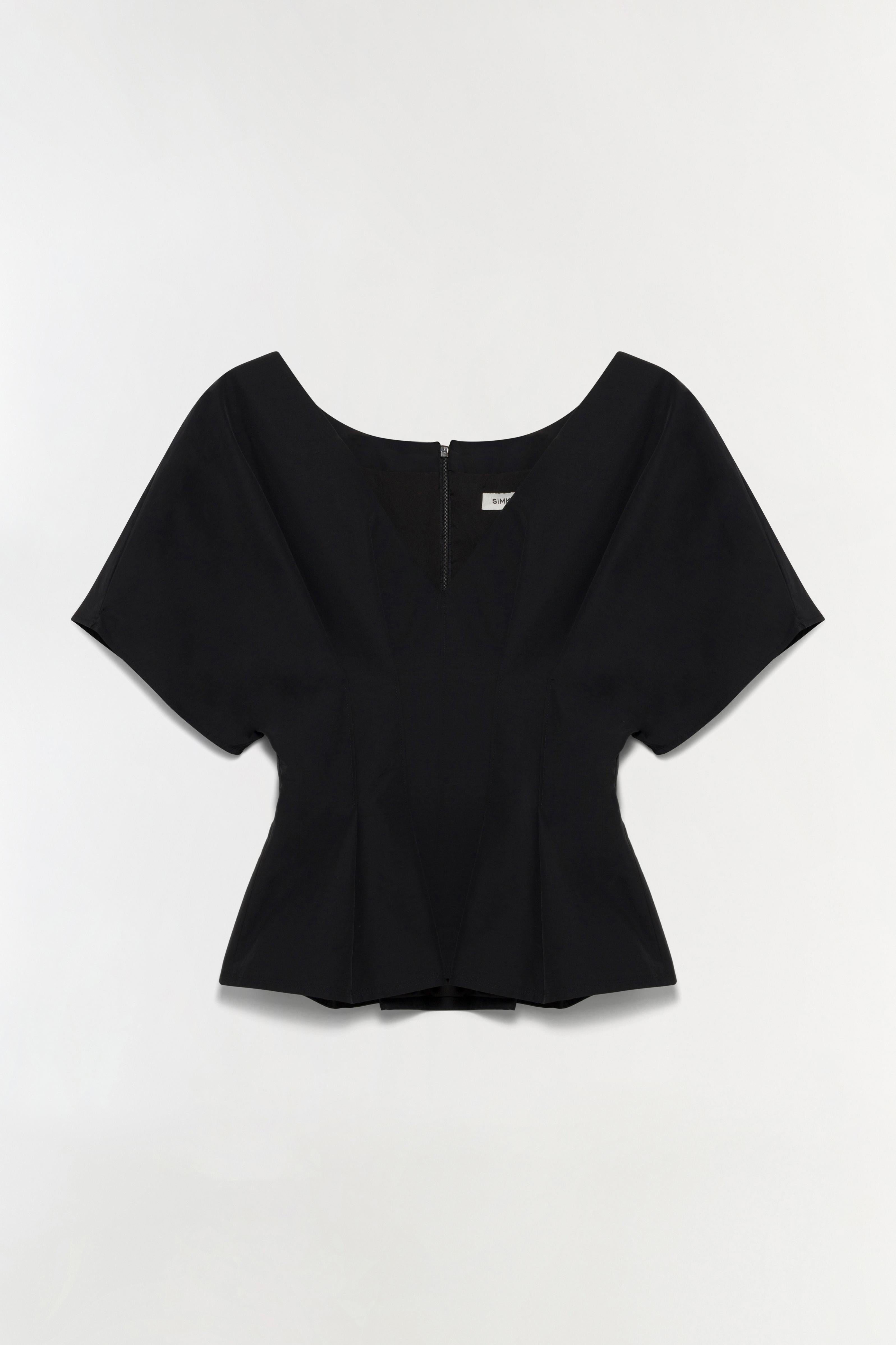 Cut from cotton faille, this peplum top features an open V-neck and finely tailored pintucks that release into structured pleats at the hem. A refined piece with effortless polish for day or night.