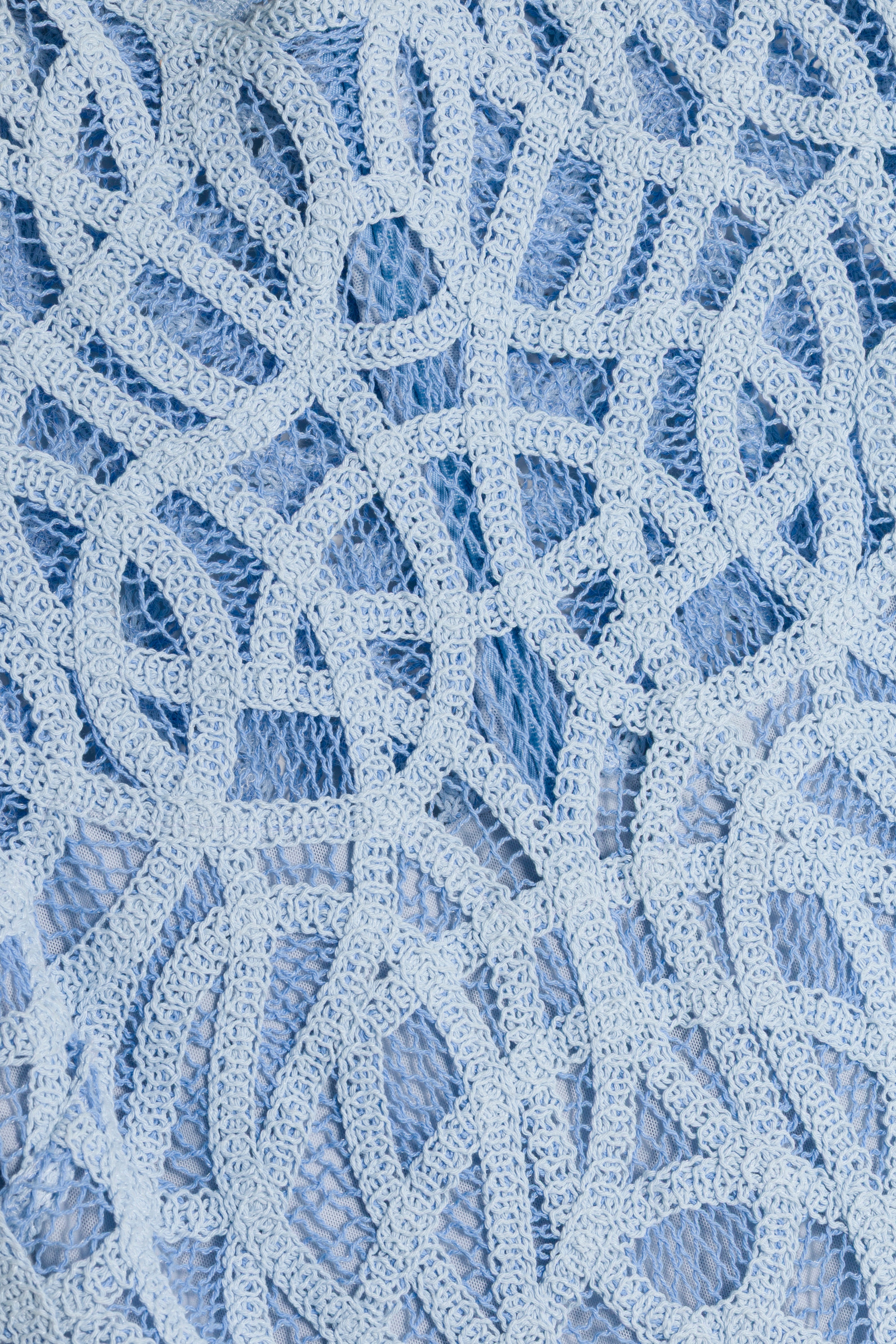The Desiree Macrame Mini Dress in Periwinkle Multi.