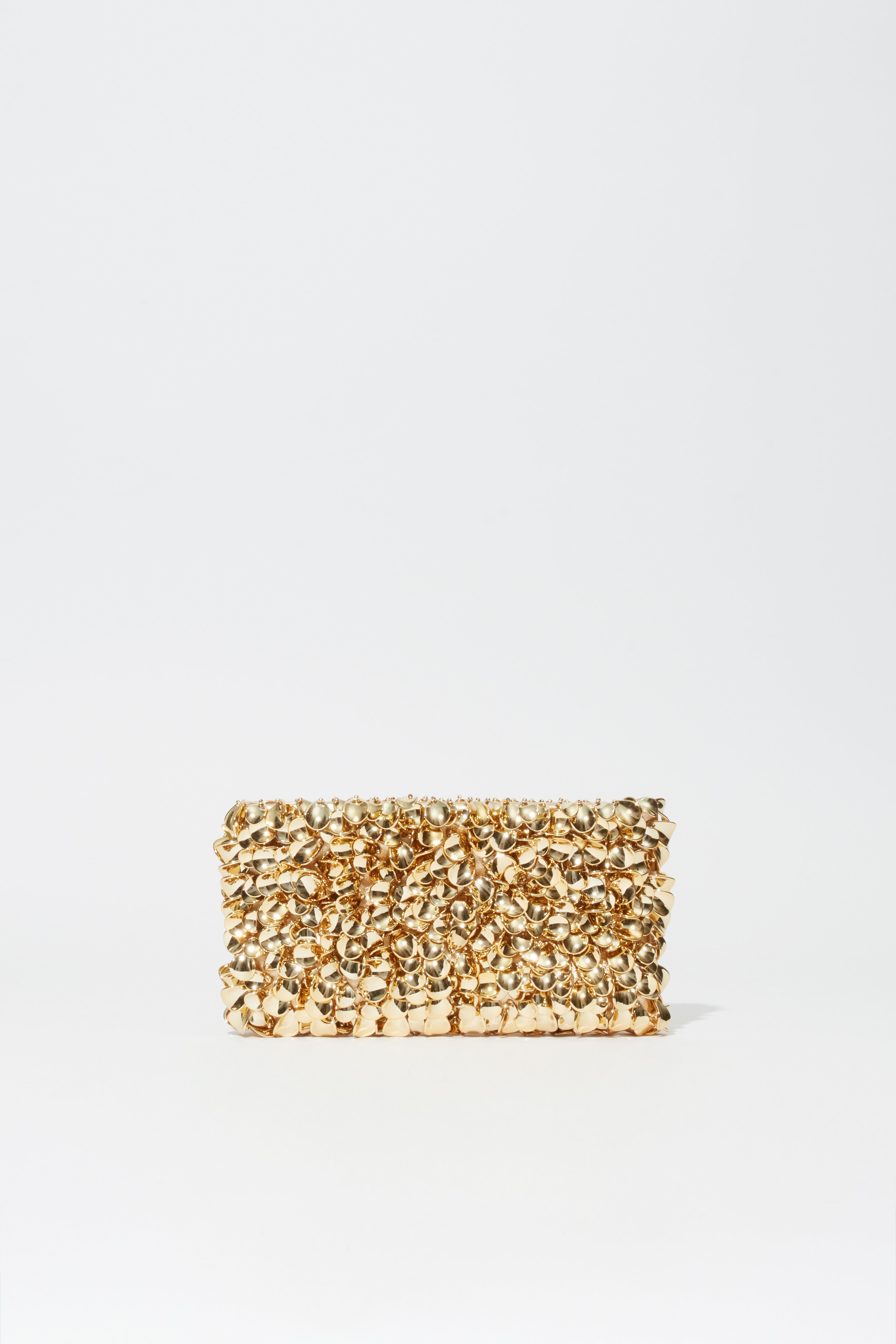 Handcrafted with clustered beads that create a sculptural surface, this clutch brings texture and depth to a clean silhouette. The removable chain strap allows it to shift effortlessly from shoulder to hand. An expressive yet understated accent for evening or occasion.