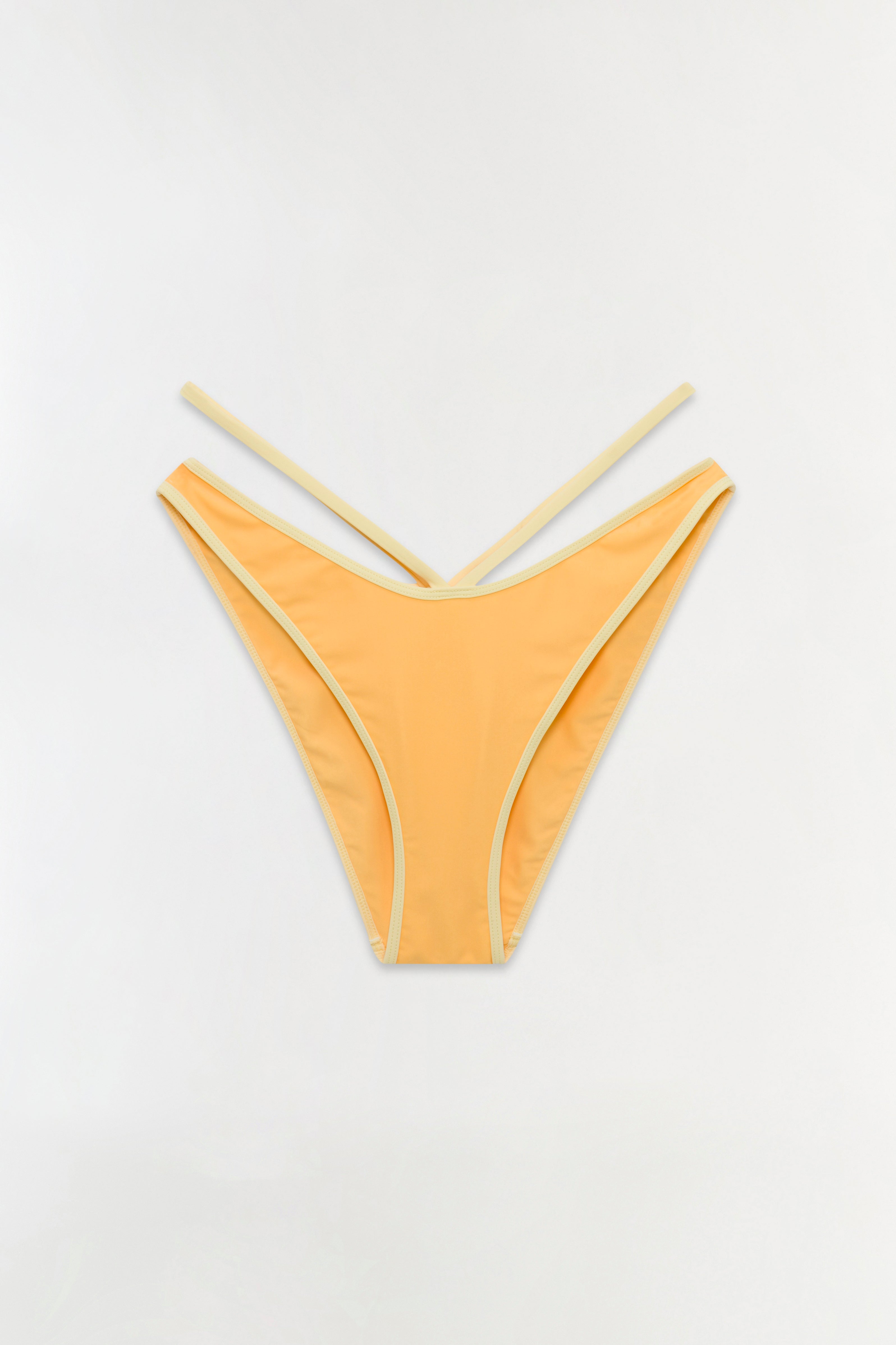 Our signature Emmalynn Bikini Bottom in Buttercream Multi. A bikini silhouette with contrast binding and criss-cross straps at the waist. Pair back with our Harlen Bikini Top to complete the look.