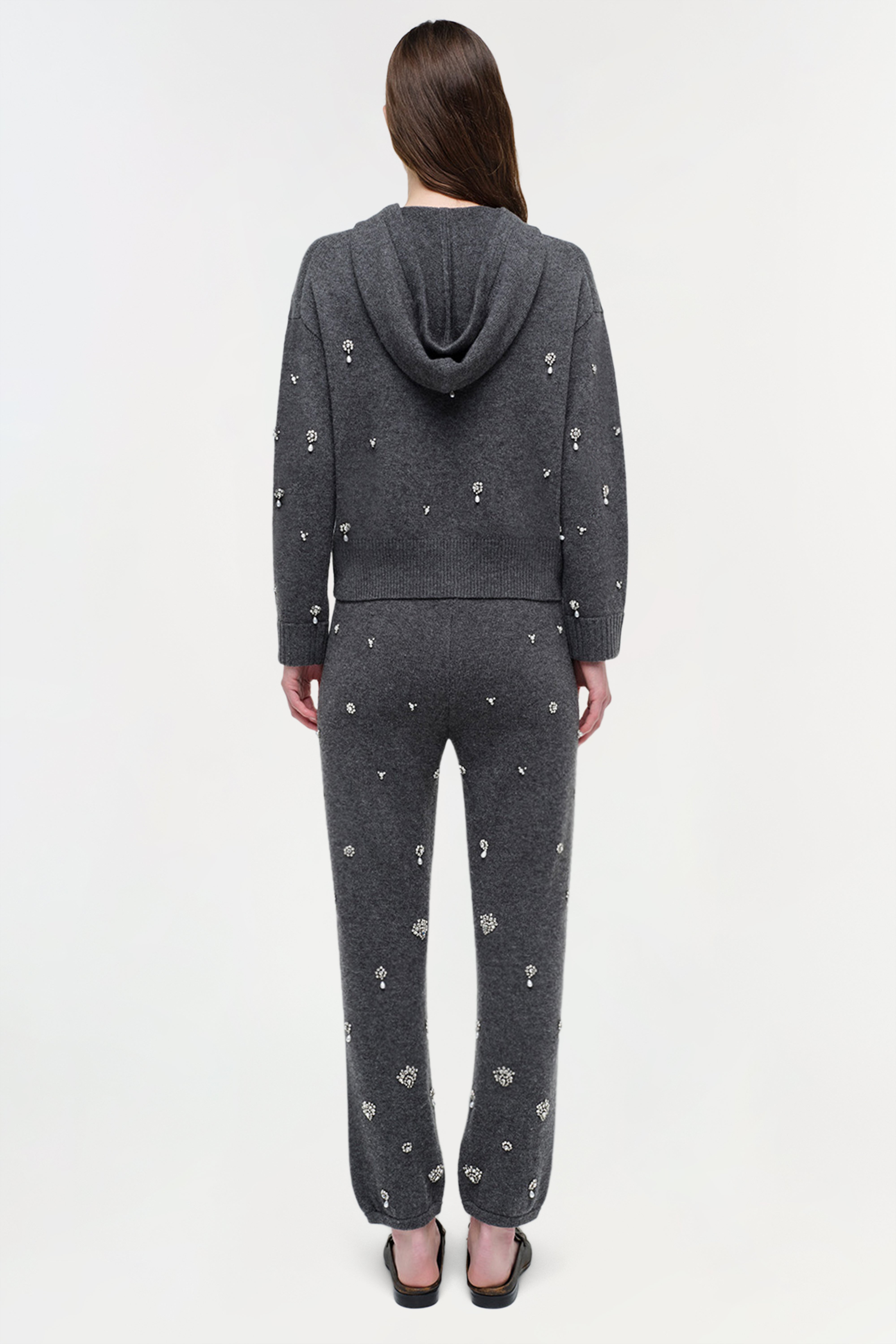 The Kandace Embellished Cashmere Jogger in Charcoal Grey