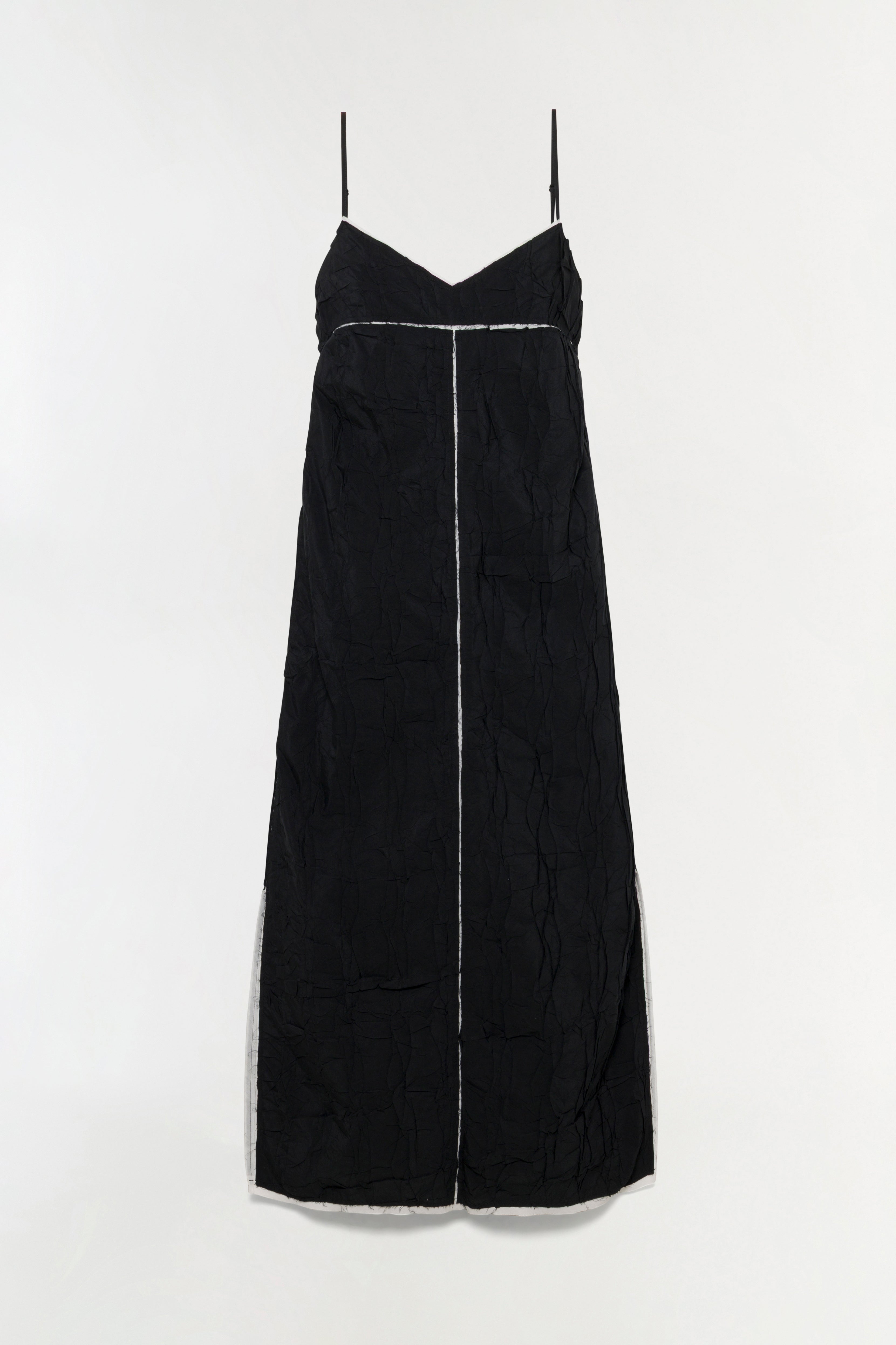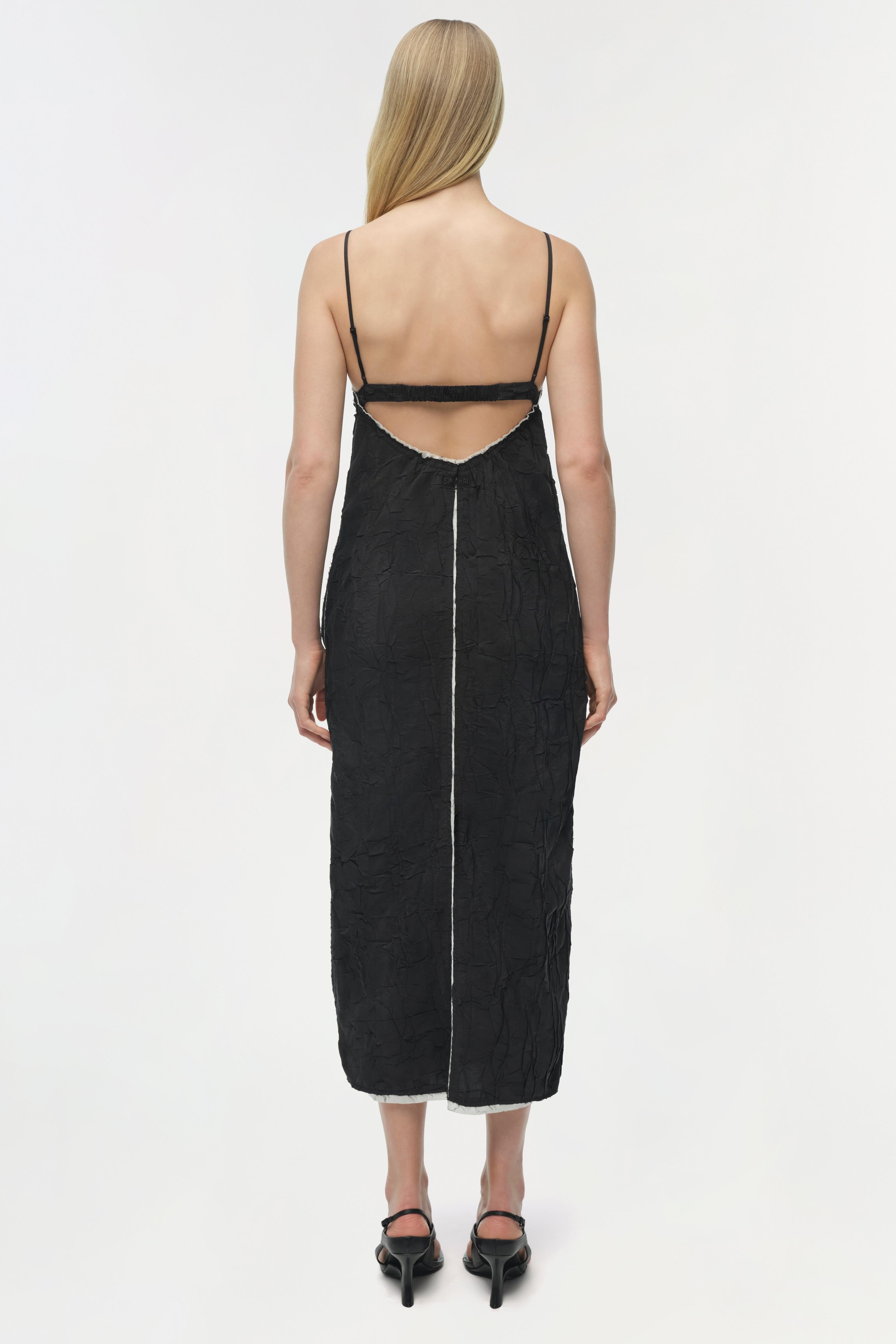 The Leah Midi Dress in Black Multi. Effortless and refined, this midi dress features a soft wave texture cotton-blend construction. A gentle sweetheart neckline and structured seams create a streamlined, flattering shape.