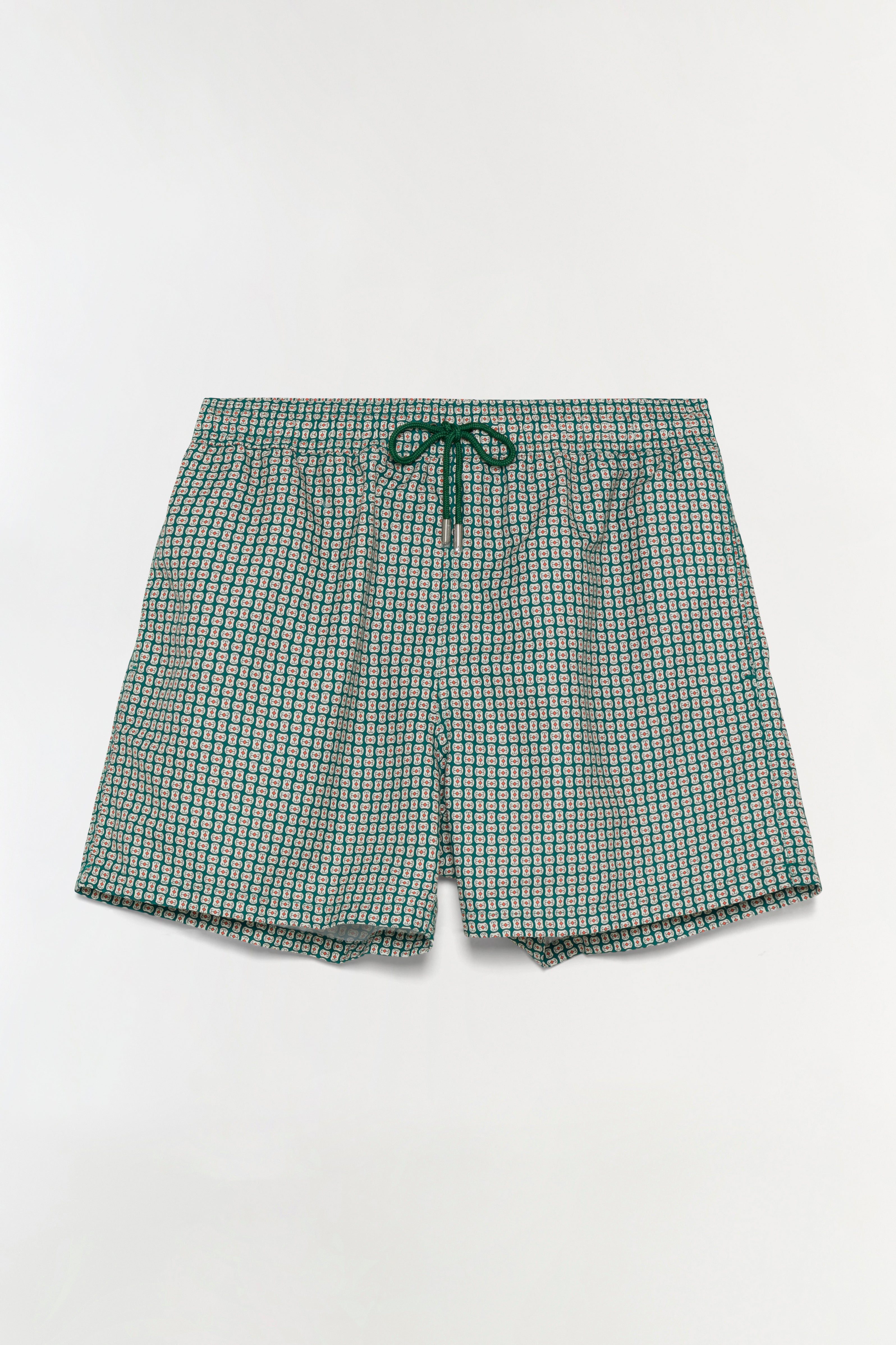 The Lowell Swim Shorts in Kelly Green Foulard Print