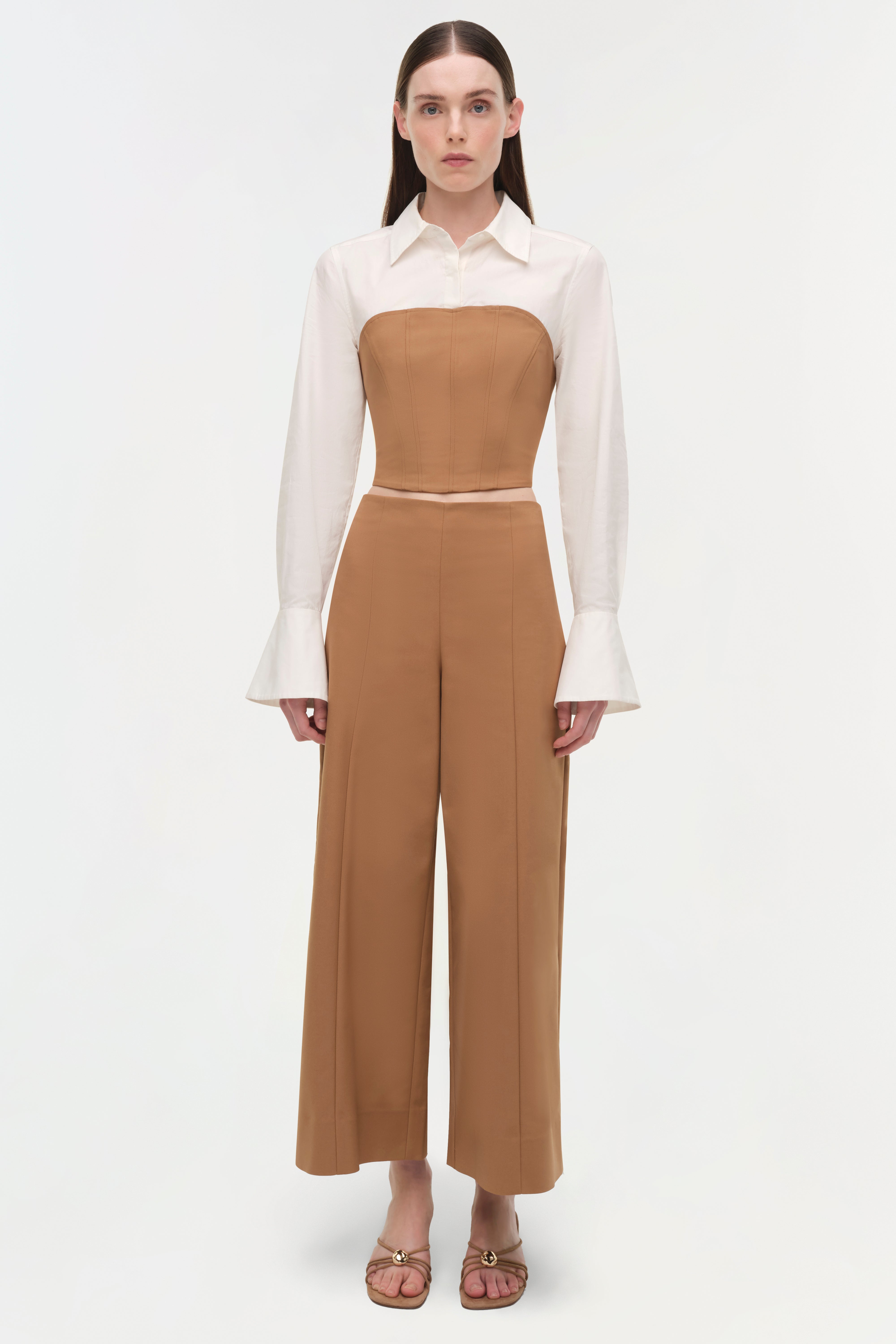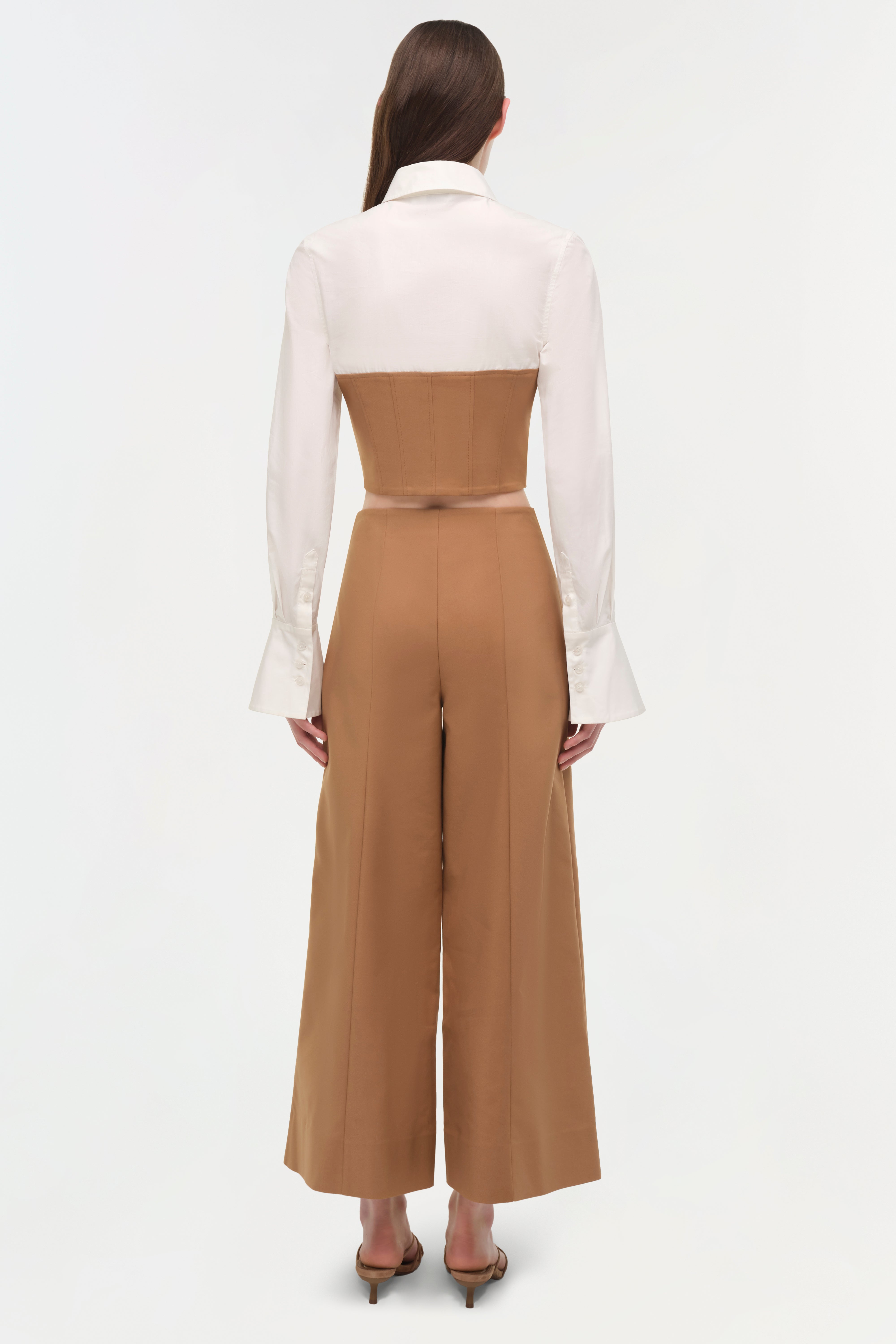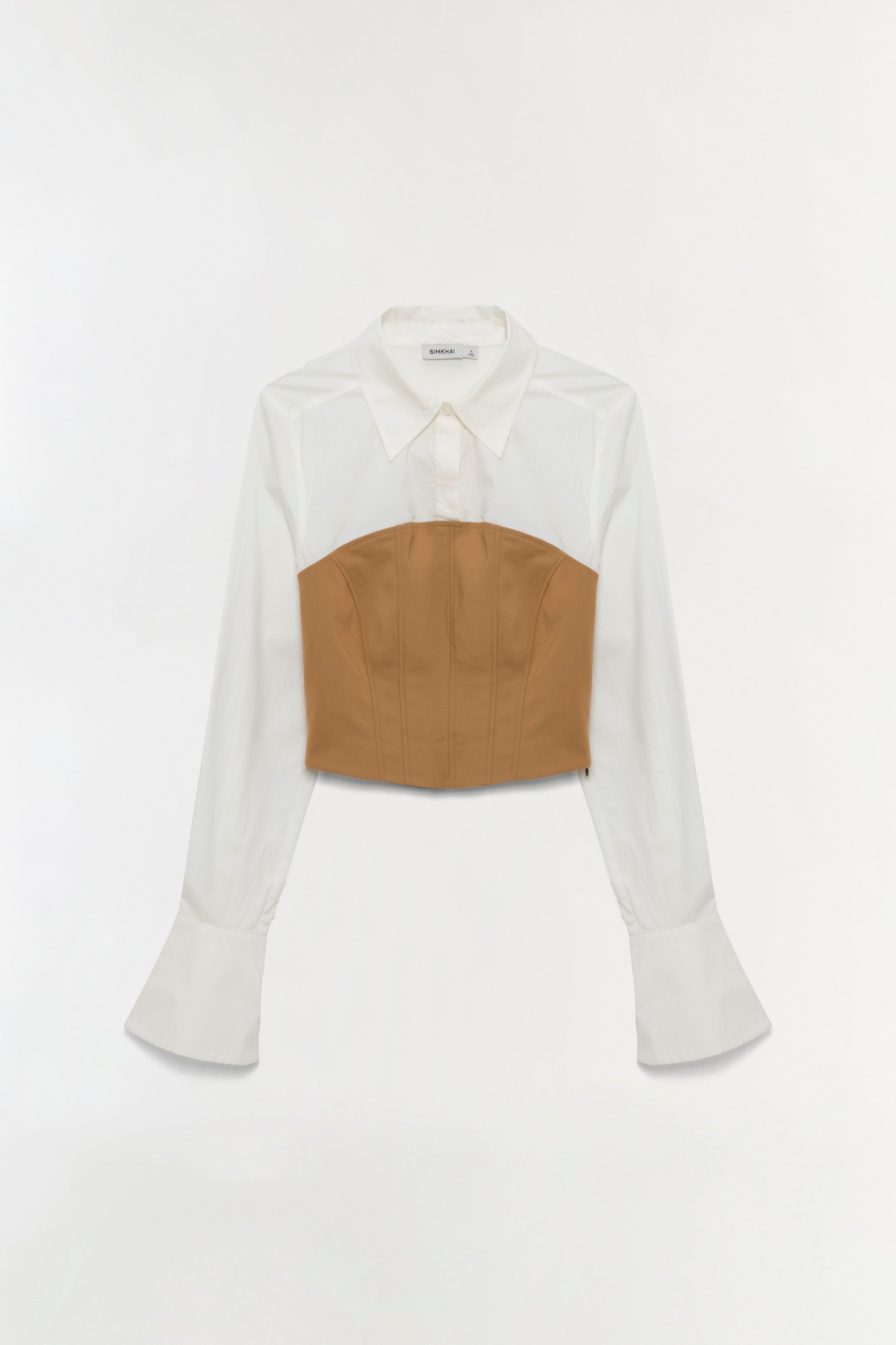 Made from utility cotton with a poplin under layer, this bustier shirt is constructed for a streamlined finish. The contoured bodice is shaped with internal boning, adding subtle definition to the structured base. A directional take on shirting with engineered fit.