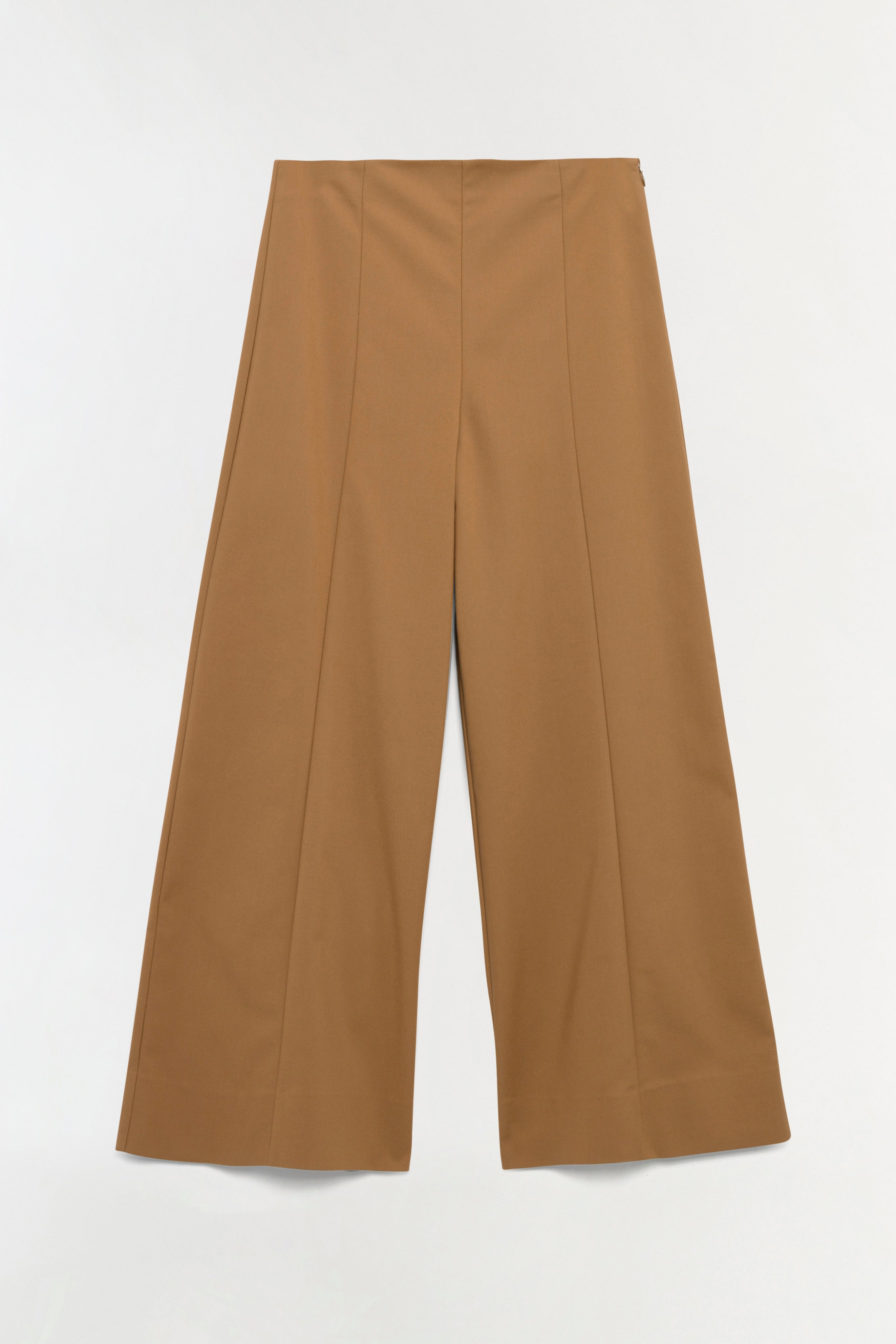 Cut from crisp utility cotton, these pants feature a high waist and wide leg balanced by precise front seams. The silhouette falls with clean structure and ease. Tailored minimalism designed for versatility.