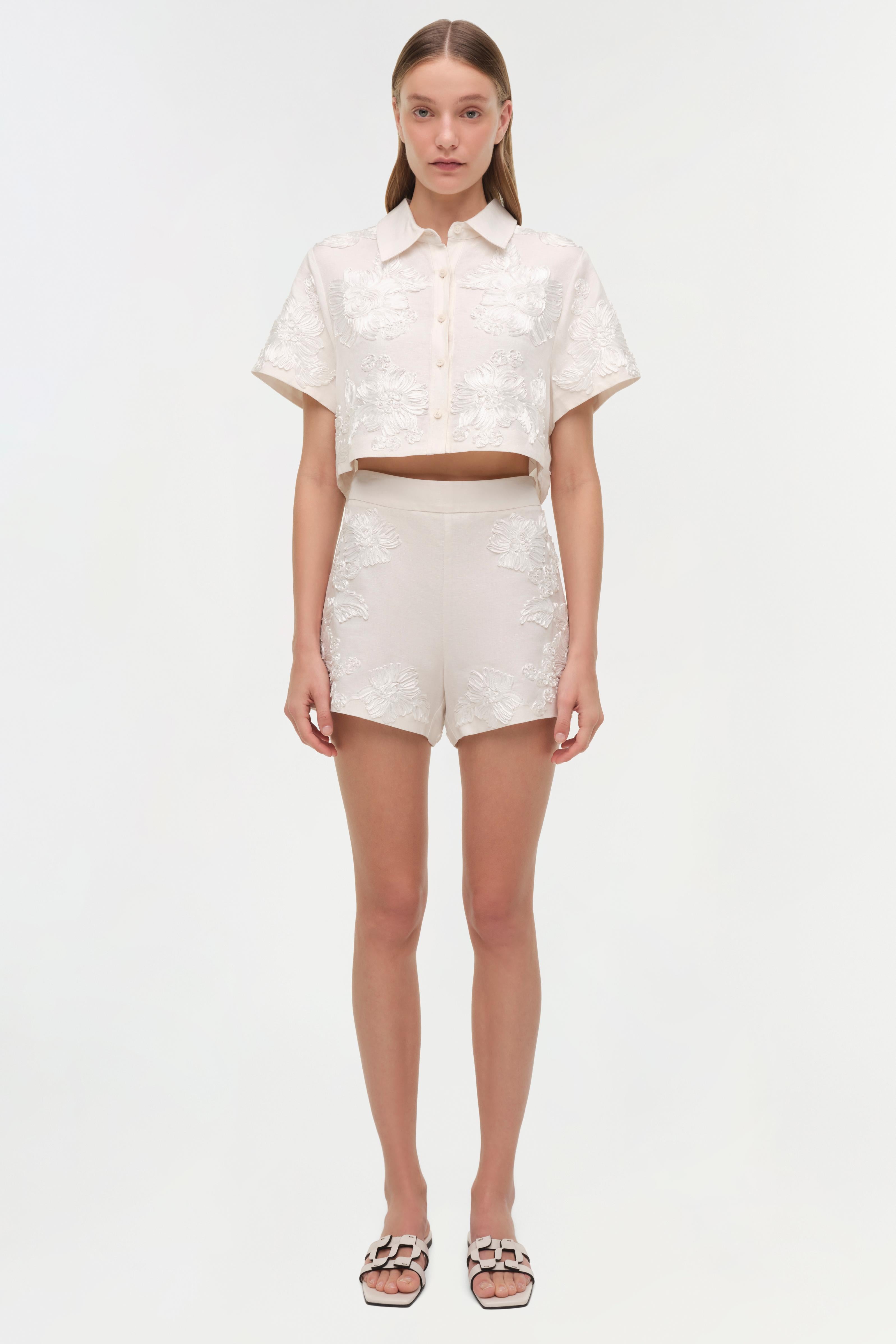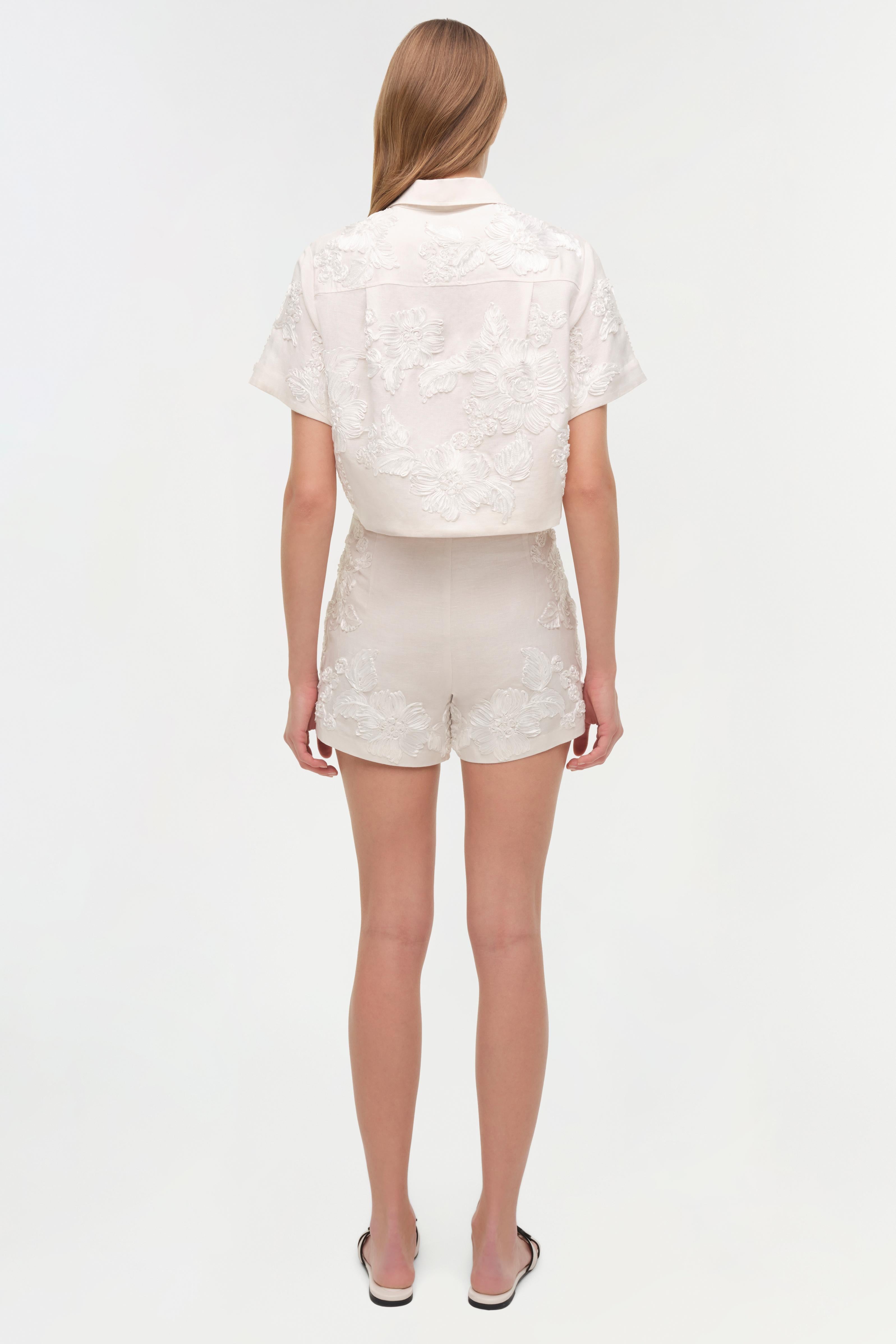 The Callie Soutache Linen Camp Shirt in Ivory.