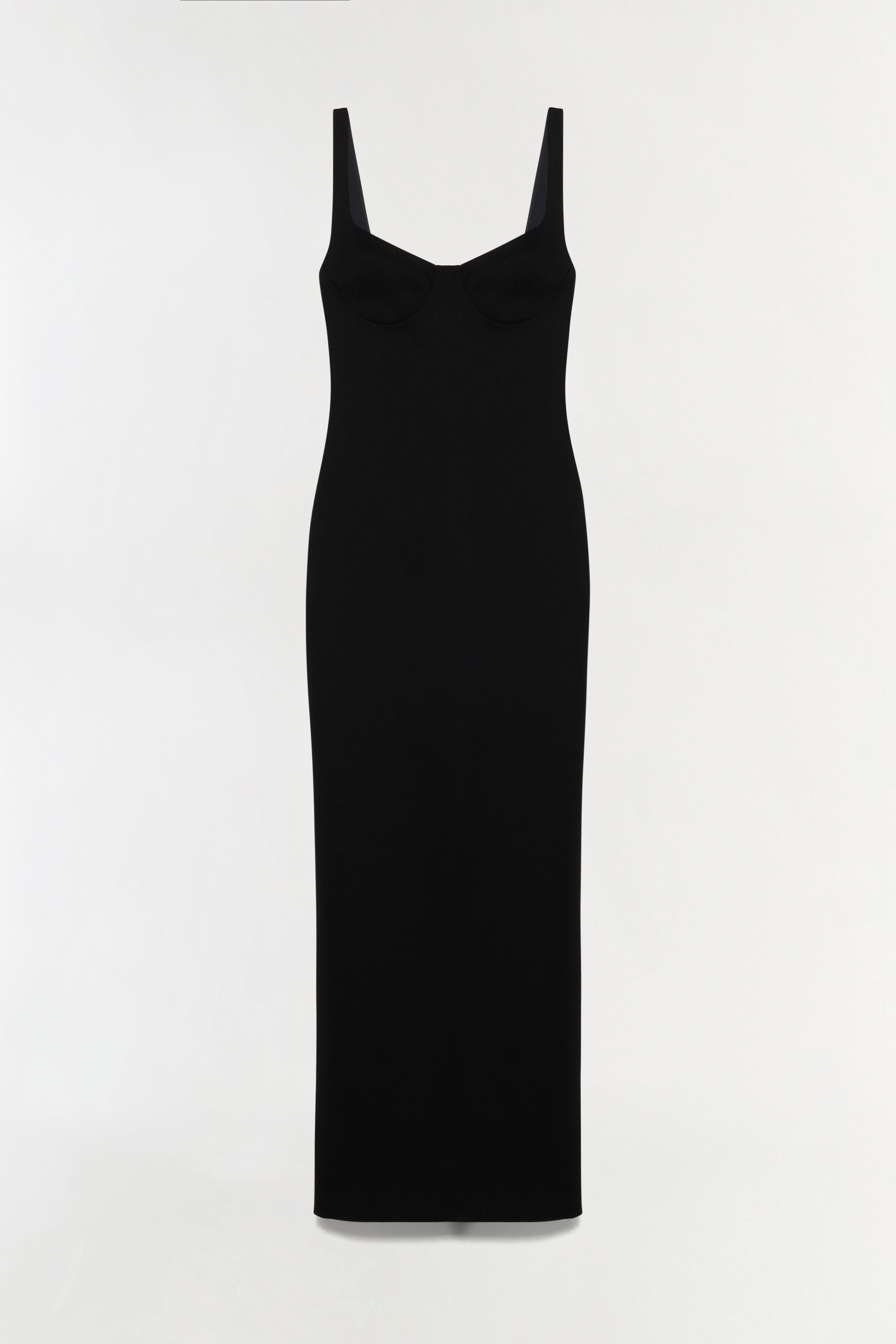 The Cabot Sculpted Scuba Maxi Dress in Black. With a sculpted bodice and a sleek, elongated silhouette, this sleeveless maxi dress feels modern and refined.