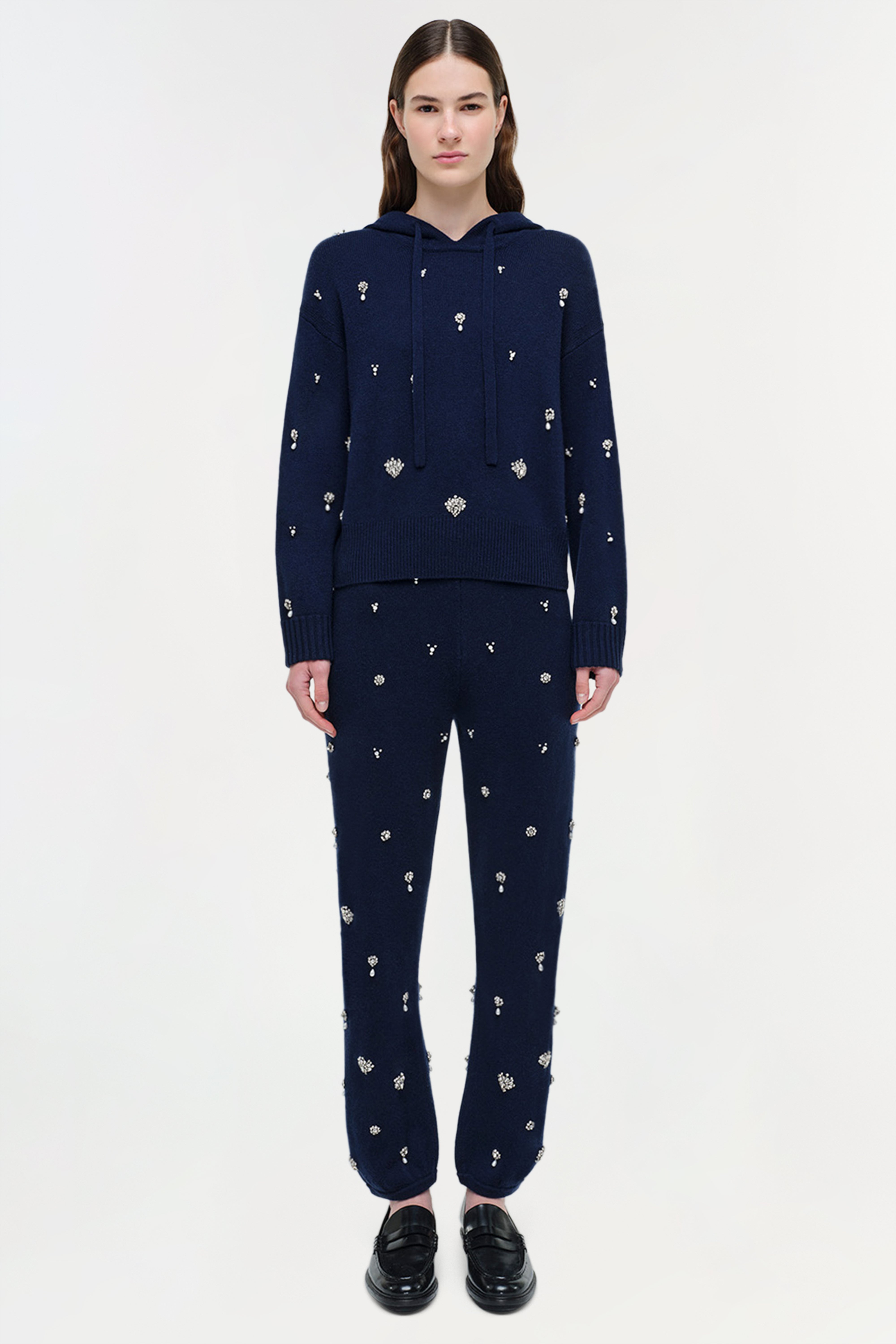 Crafted in a wool-cashmere blend, these joggers are adorned with crystal detailing for a refined approach to leisure. A tapered leg and rib-knit cuffs define the silhouette. Elevated yet effortless, they bridge casual and polished.