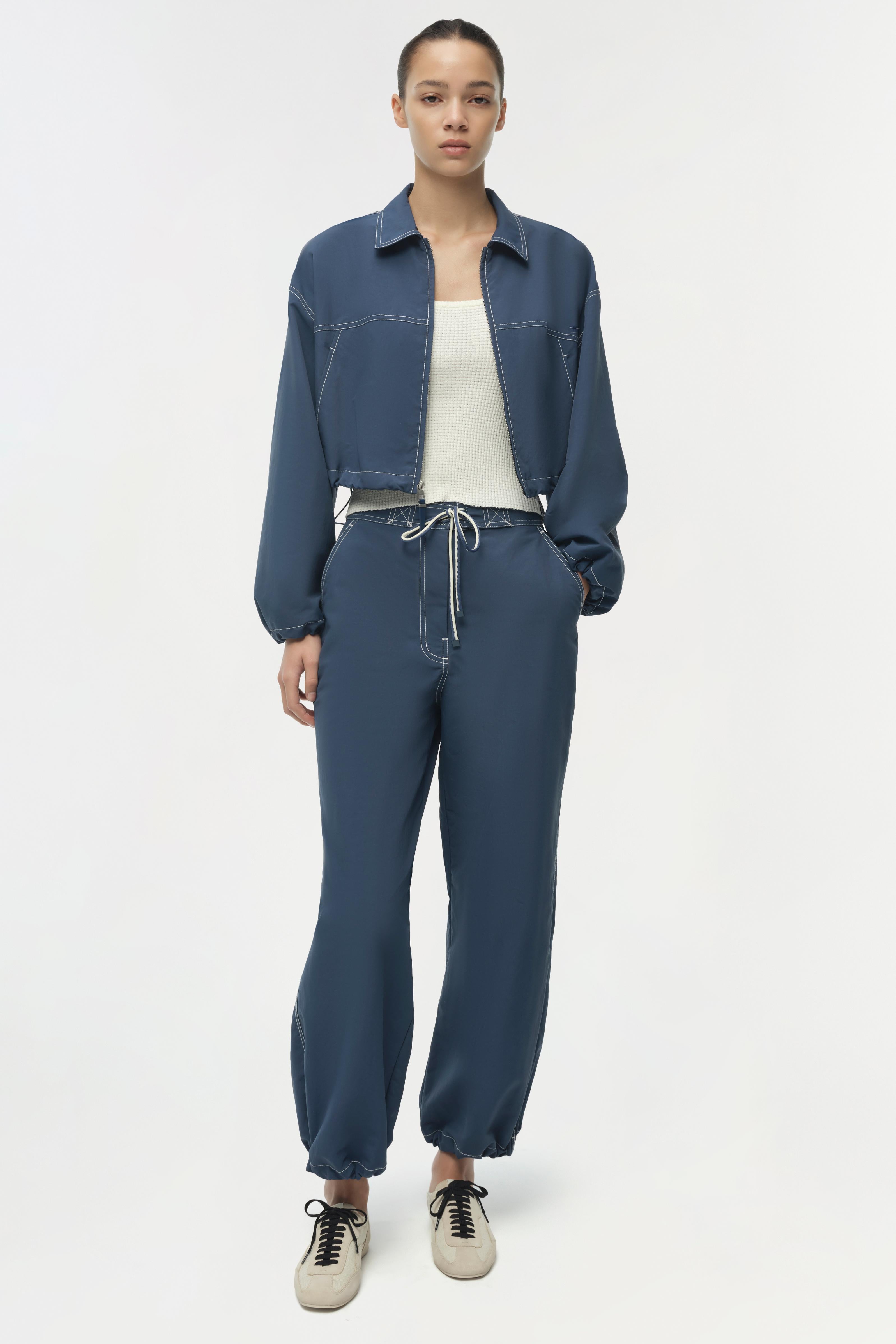 The Lennox Straight Leg Pant in Dark Indigo. Designed with a straight-leg silhouette and an adjustable drawstring waistband, these cotton-blend pants have a relaxed, easy fit.