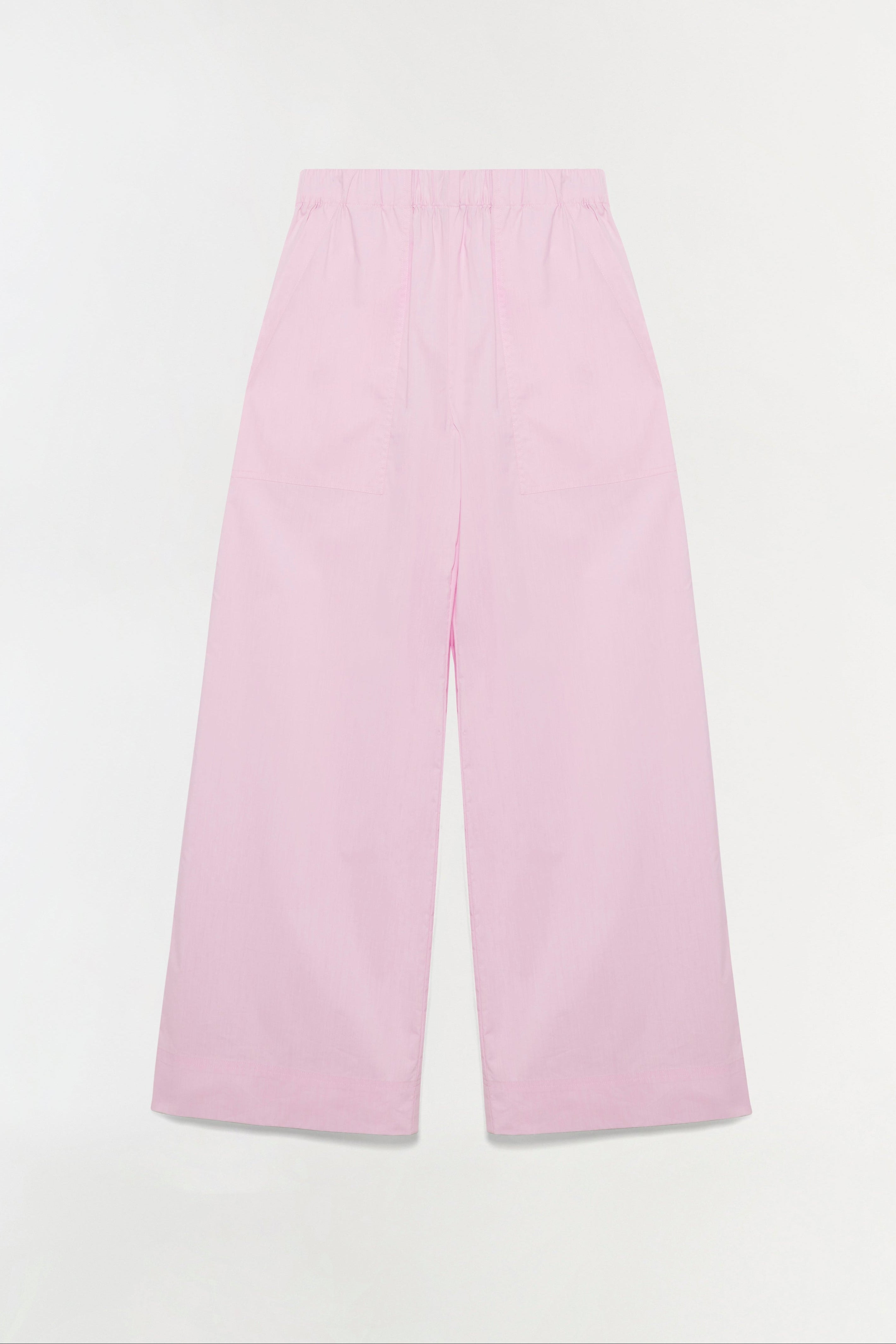 The Arden Pull On Pant in Tulip. Designed for effortless wear, these pull-on pants in cotton poplin offer a breezy silhouette with a refined edge. Lightweight, breathable, and endlessly versatile.