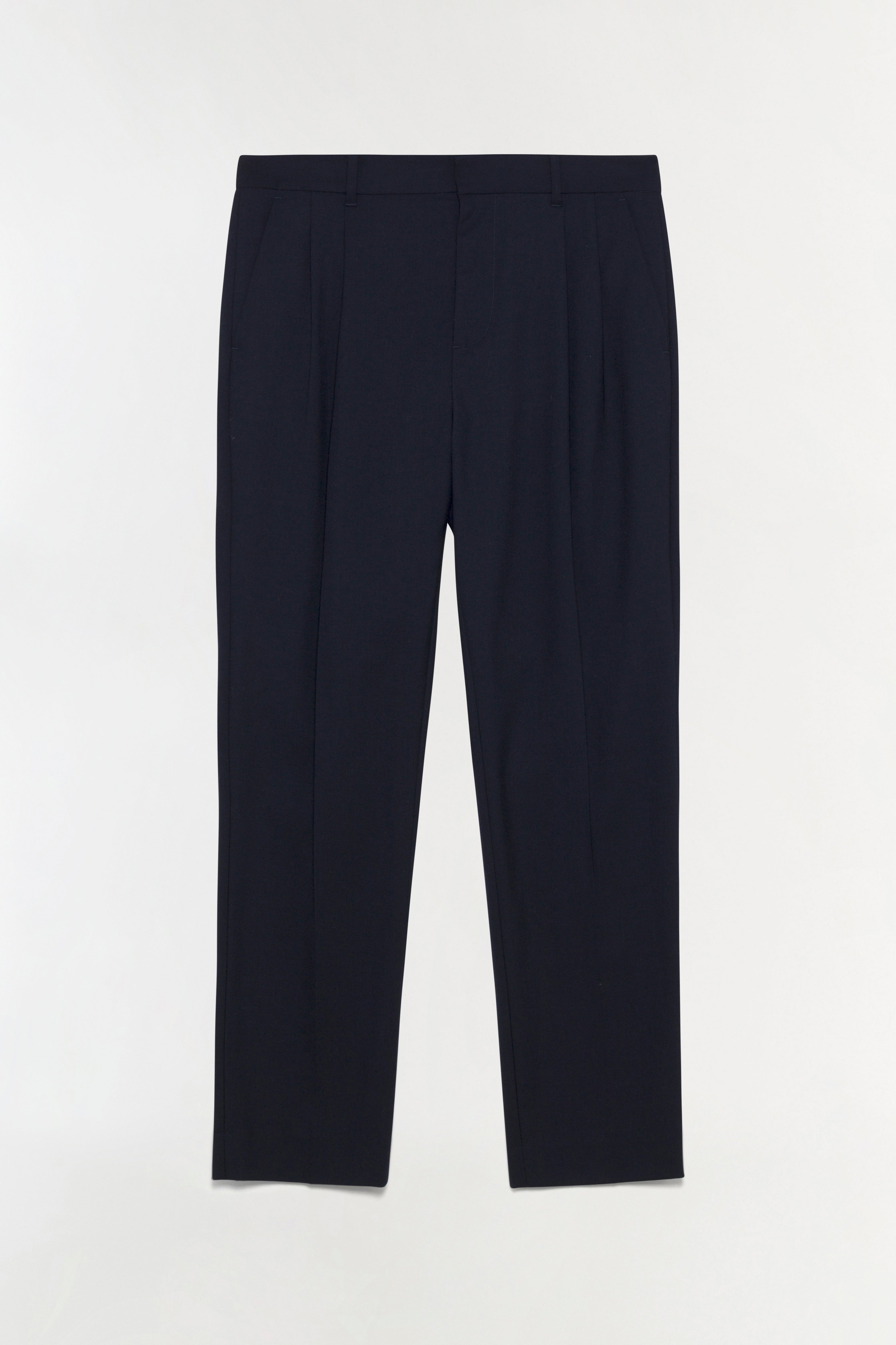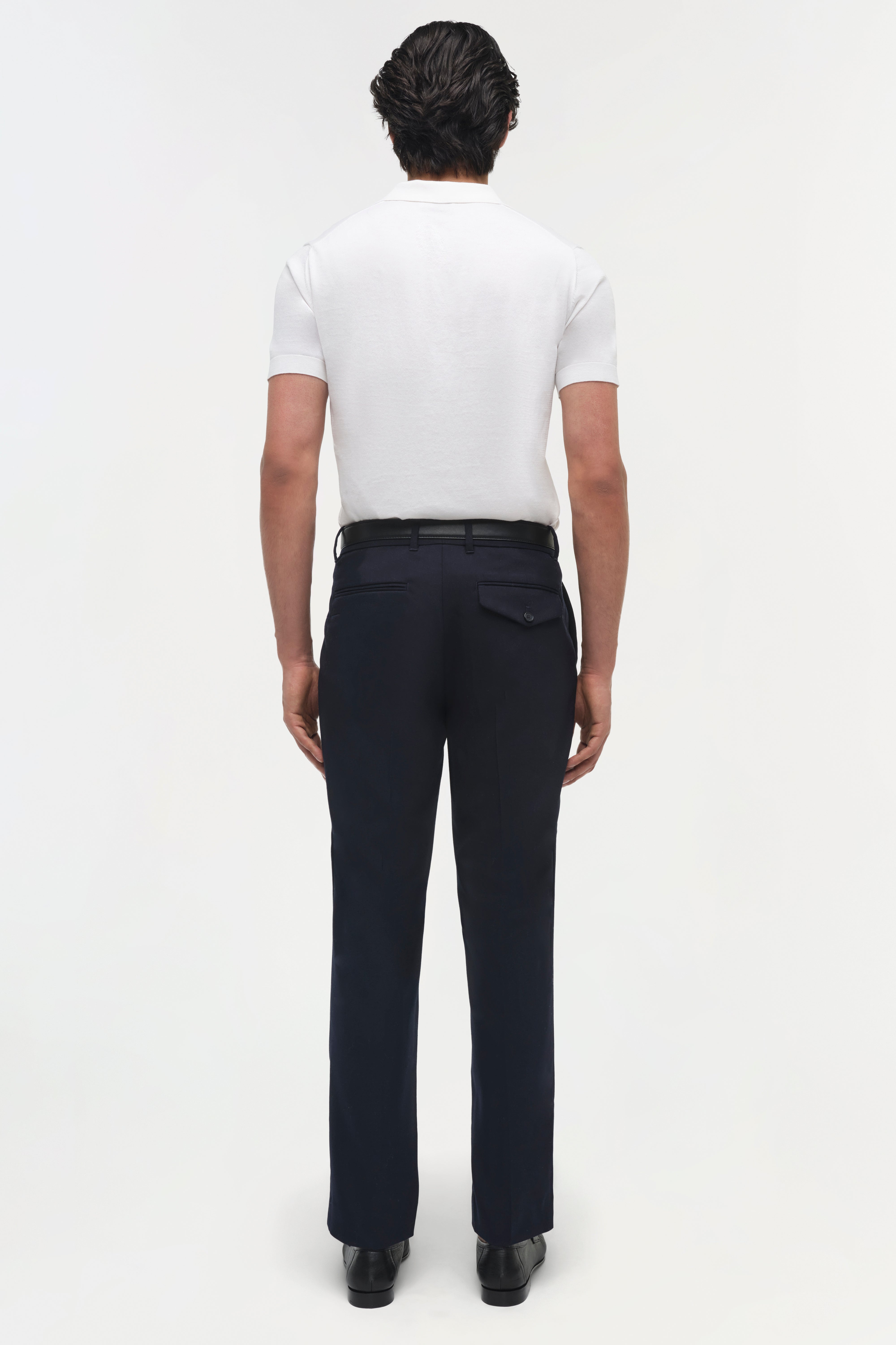 These trousers are cut from a refined suiting fabrication that delivers both structure and ease. The subtly tapered leg create an elongated silhouette, while pressed creases add a polished finish. Understated yet elevated, they pair effortlessly with everything from relaxed knits to sharply cut jackets, offering a versatile foundation for modern dressing.