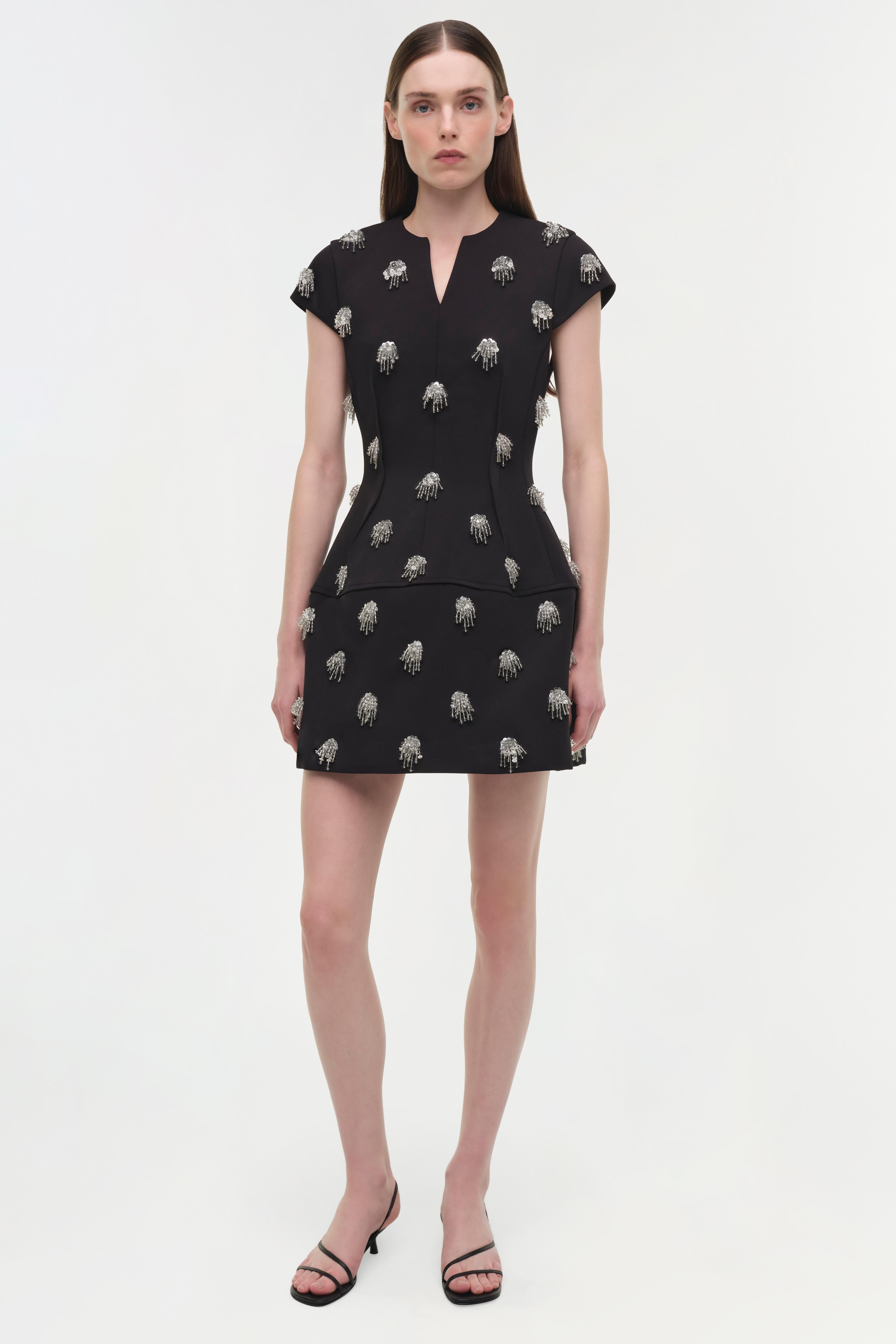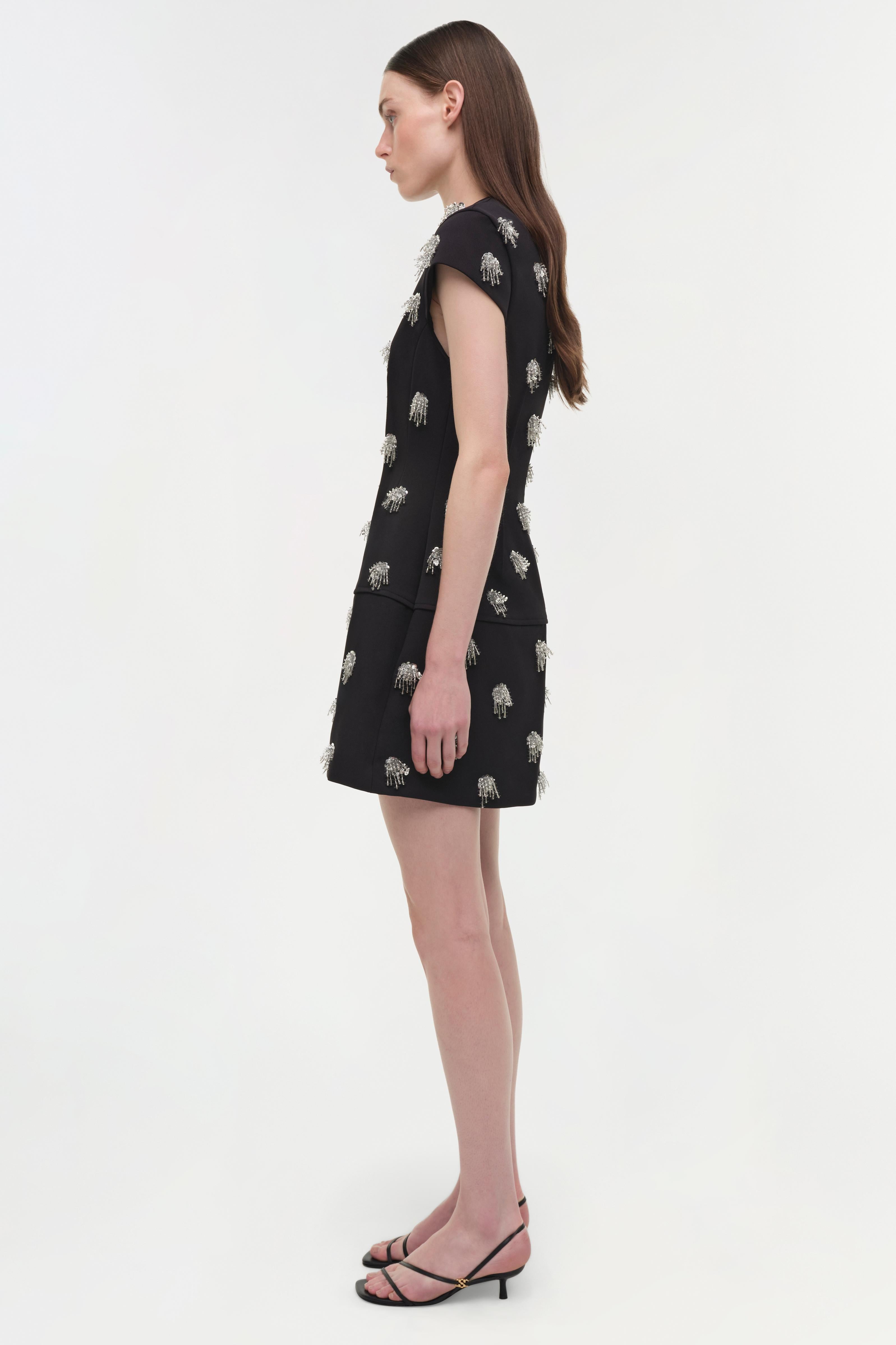 Tailored in sturdy twill, this piece holds its form while showcasing delicate embellishments for understated sparkle and texture. The mini silhouette is sharply defined, blending refined detailing with a sleek, modern cut.