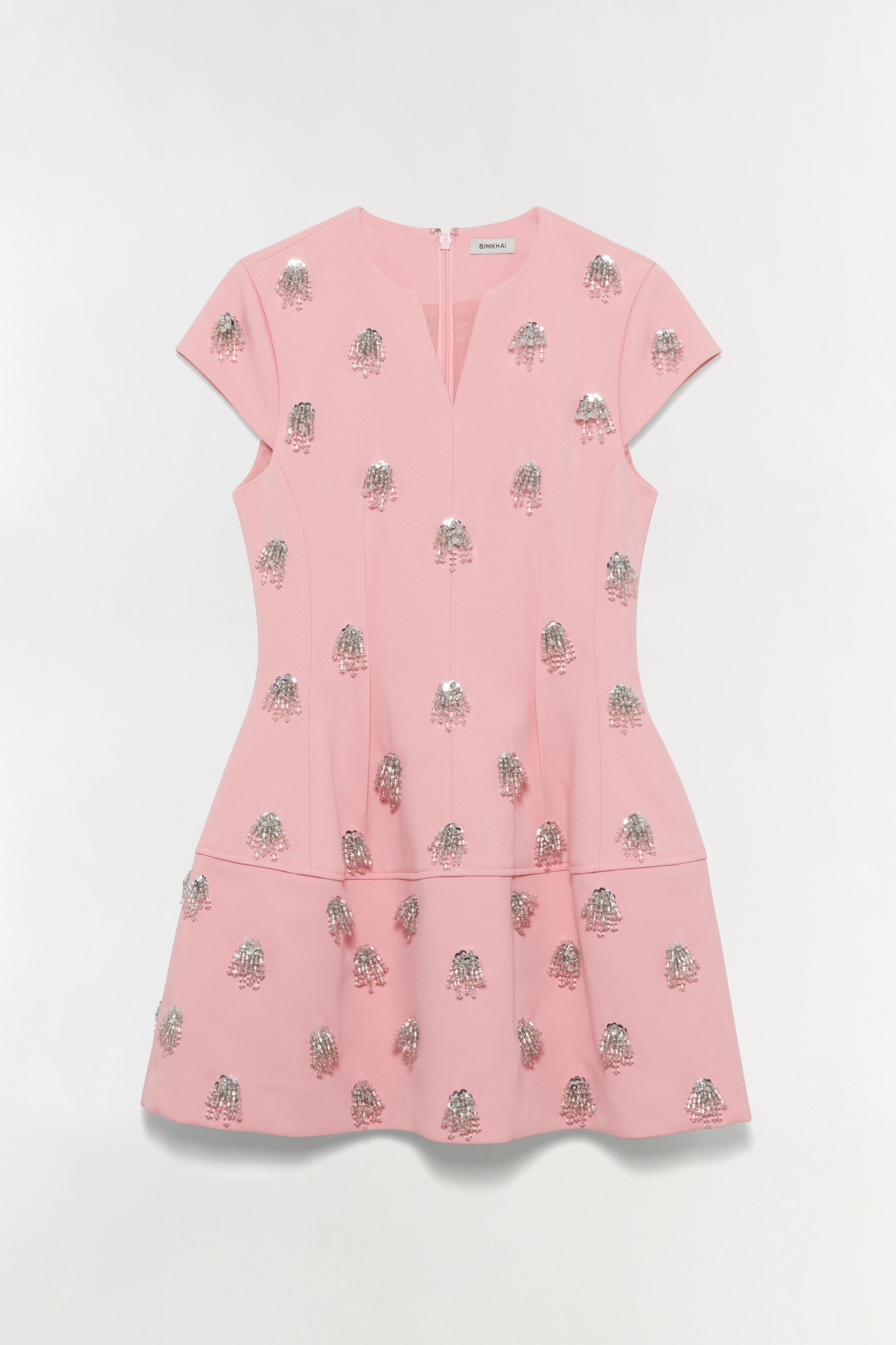 The Bethanie Twill Embellished Mini Dress in Dusty Rose