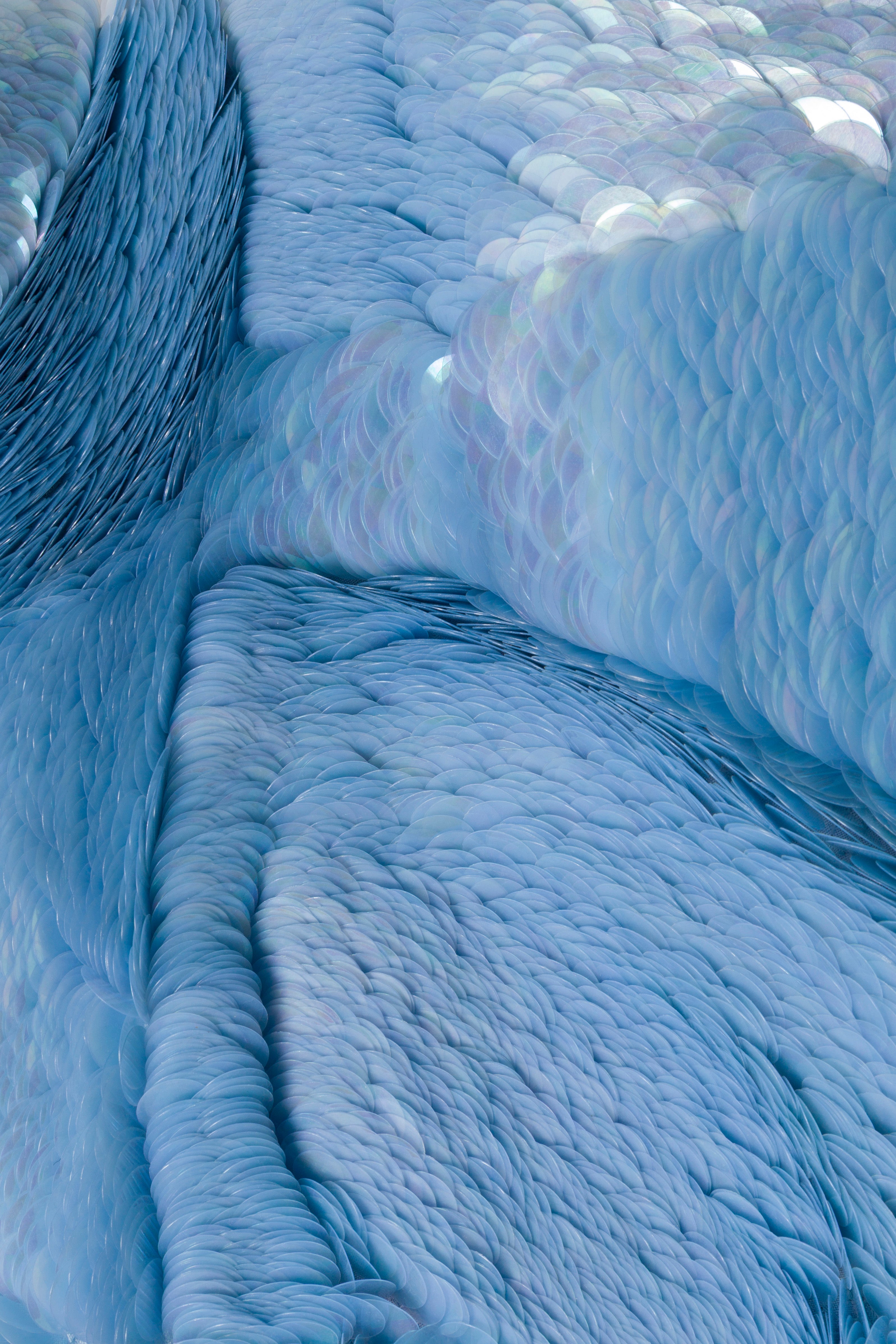 Layered sequins form a rhythmic, light-reflective pattern that create dimension and movement throughout. Side cutouts contour the waist, lending the silhouette a sculpted, modern edge.