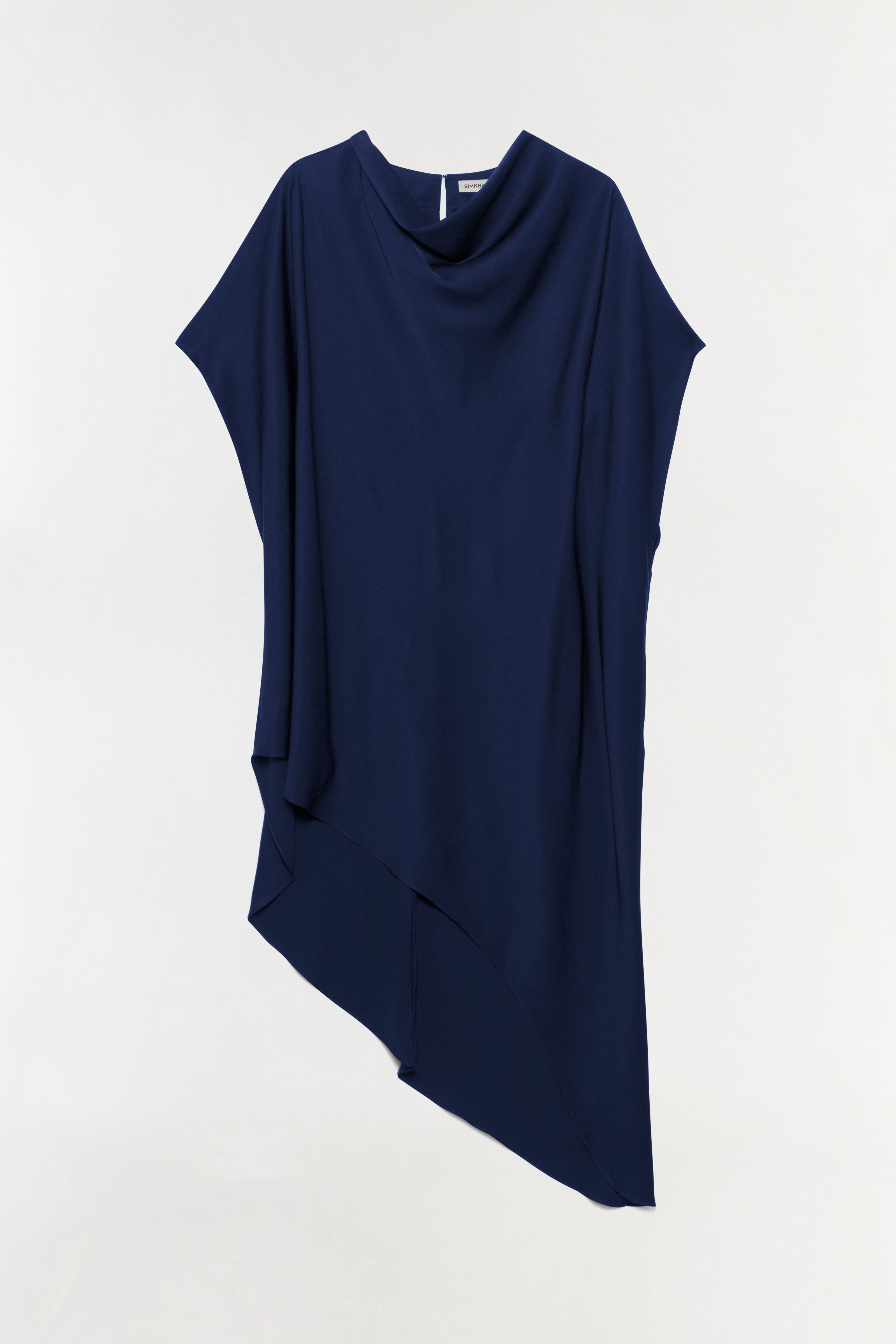 This satin mini dress is shaped with an artful drape, its cape-like sleeves cascading into an asymmetric hemline. A softly folded neckline frames the silhouette, adding a slight structure. Strikingly fluid the dress embodies modern glamour with an effortless sense of drama.