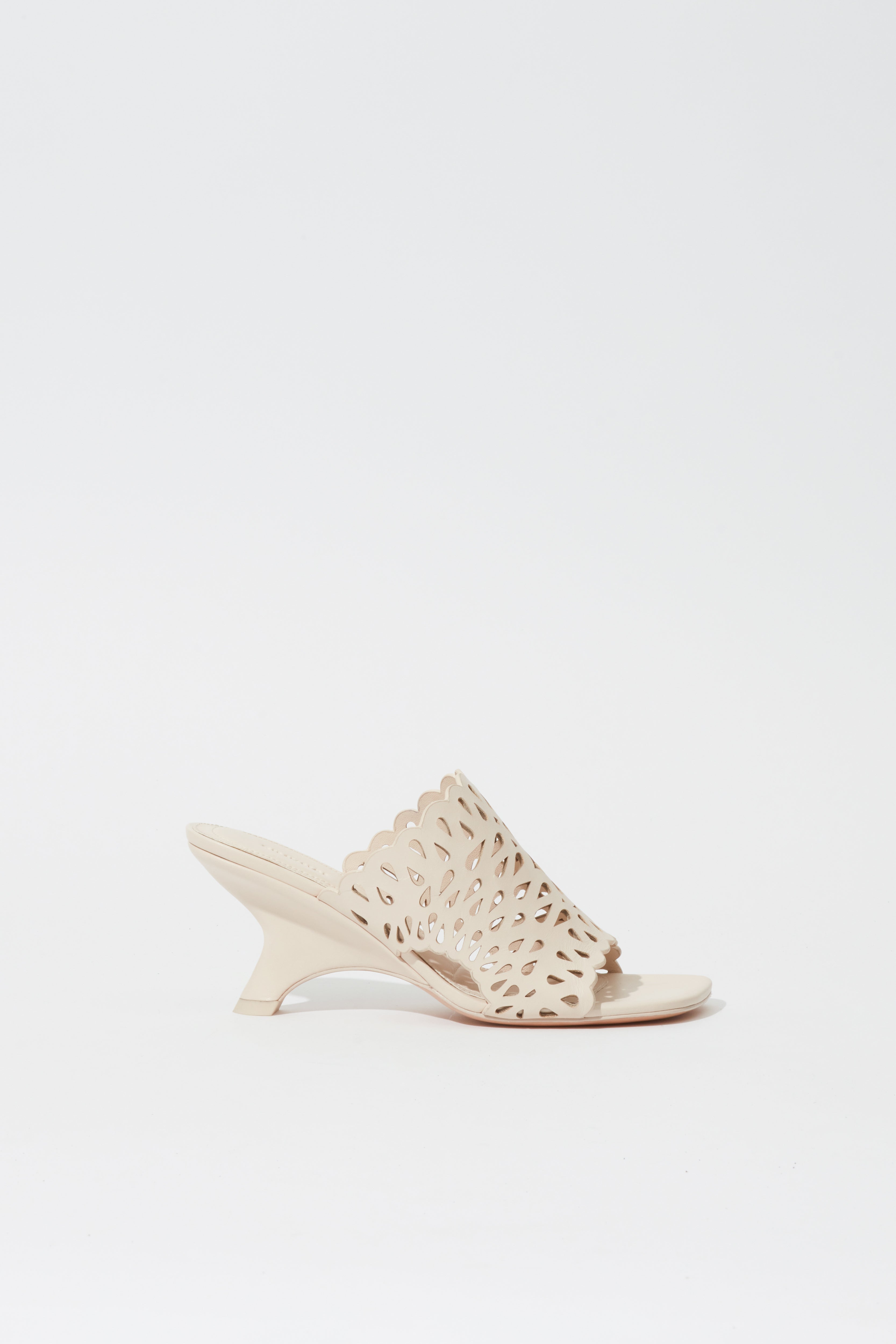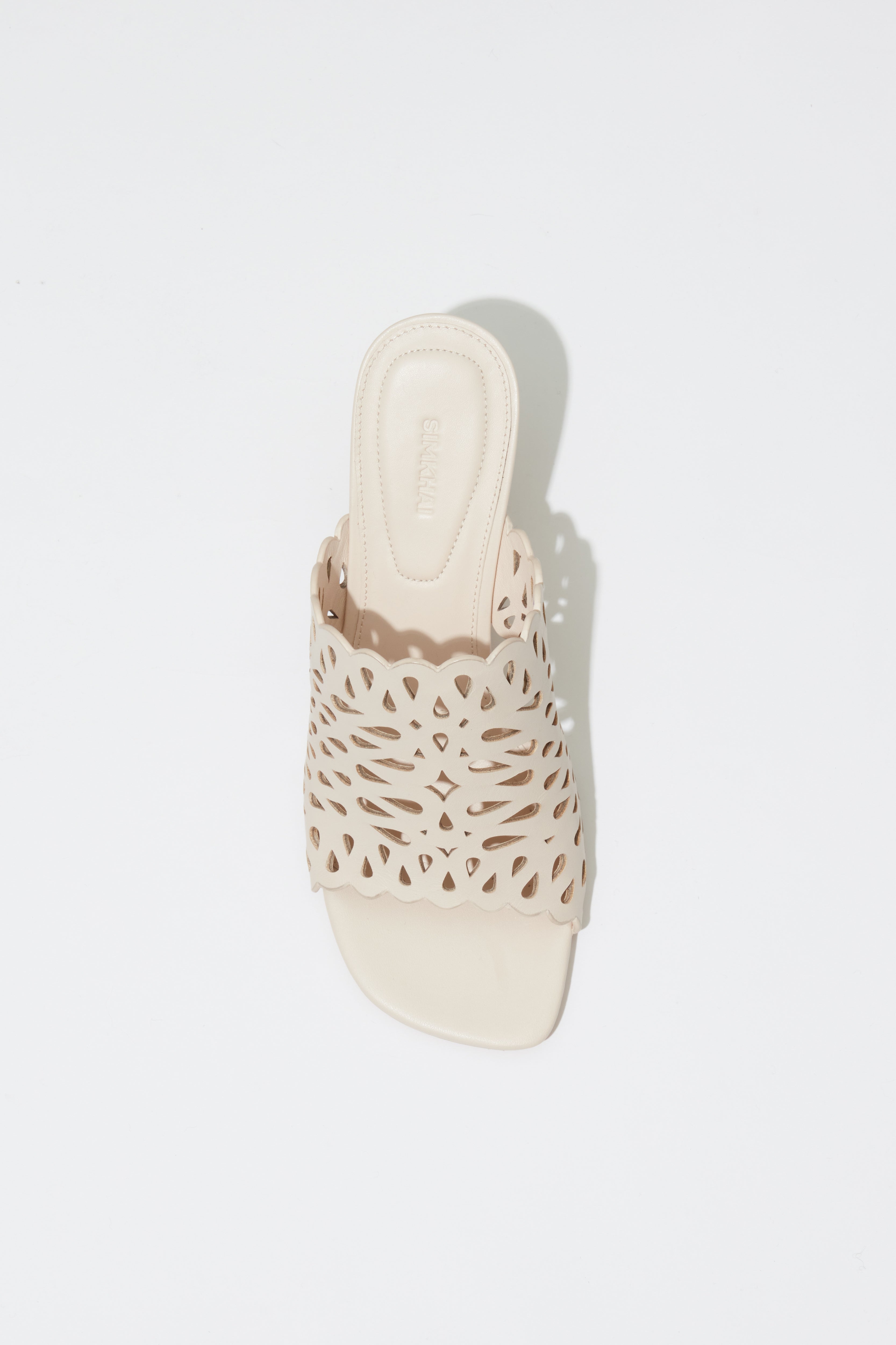 The Shadow Mule Laser Cut Leather Sandal in Cream